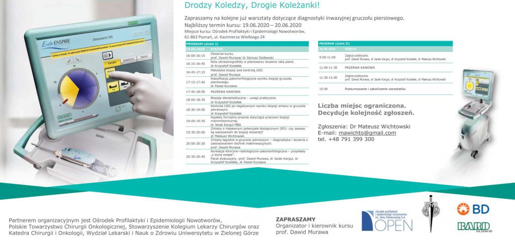 Zapraszamy na kolejne już warsztaty dotyczące diagnostyki inwazyjnej gruczołu piersiowego. Post author:admin Post published: Post category:Aktualności Pobierz Może ci się spodobać również Kurs laparoskopowy w ramach POWER dla rezydentów i ze specjalizacją VII Zimowe Forum Onkologiczne podsumowanie Prof. Wojciech Zegarski zwycięzcą audytu Lapco
